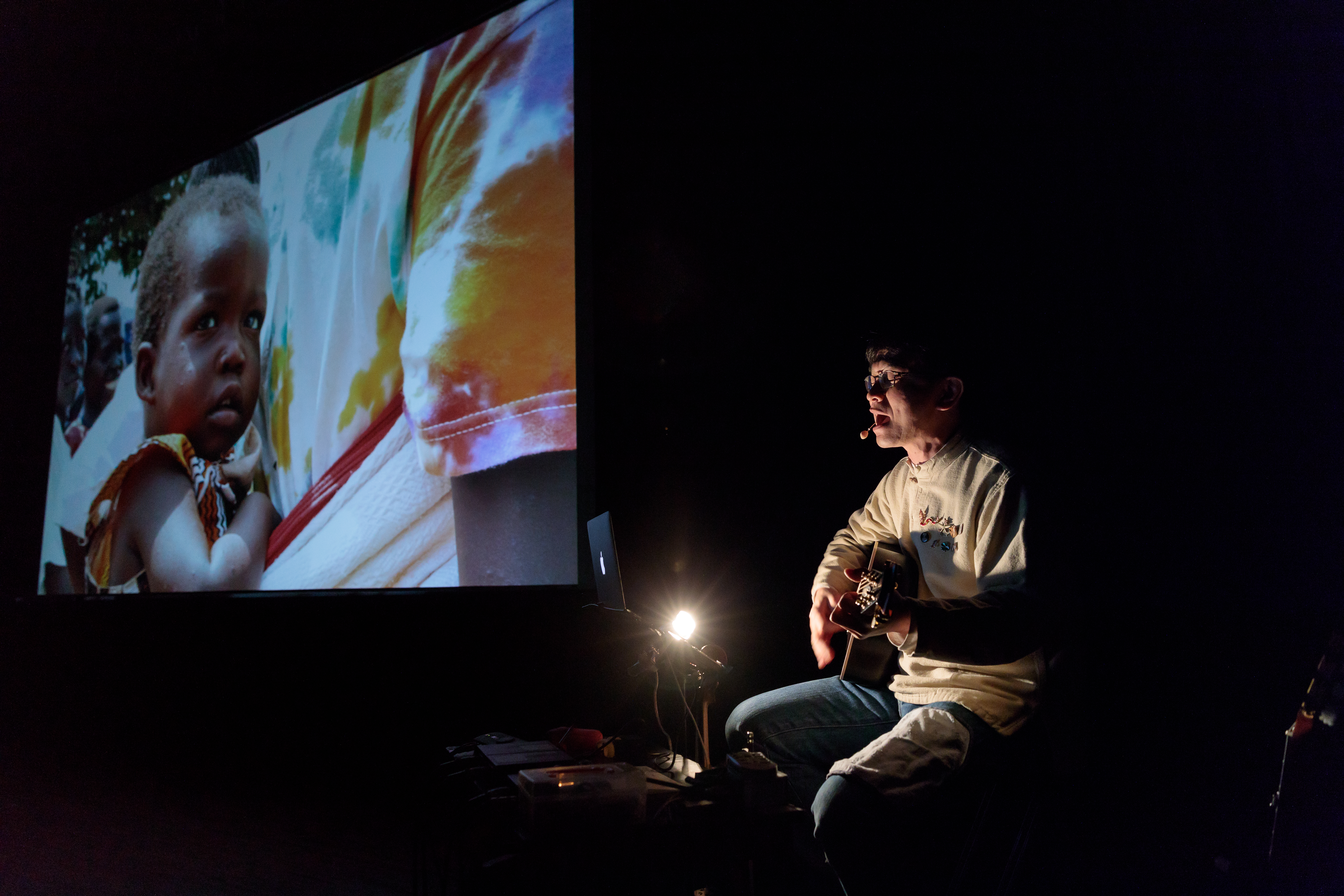 1996年1月15日に始まった、ライブ音楽と大画面の映像・スライド、語りを組み合わせた全く新しいタイプのコンサートステージです。全国の学校現場を中心に、行政、国際交流関係団体などの主催で公演を重ね、2022年11月にのべ4000回を超えました。国際理解、平和学習、人権教育など、さまざまなテーマを自分ごととして考えられるような公演を行なっています。