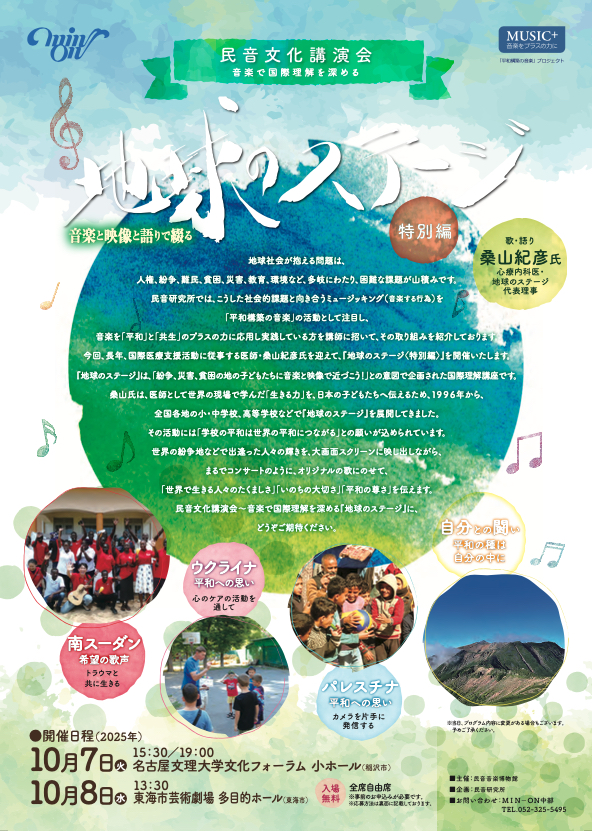 主催: 民音音楽博物館日時: 2025年10月7日(火)15:30〜/19:00〜会場: 名古屋文理大学文化フォーラム 小ホール内容: 地球のステージ〜特別版対象: 一般の方(未就学児童を除く)詳細はこちらから参加には事前申し込みが必要です 申込みはこちらから